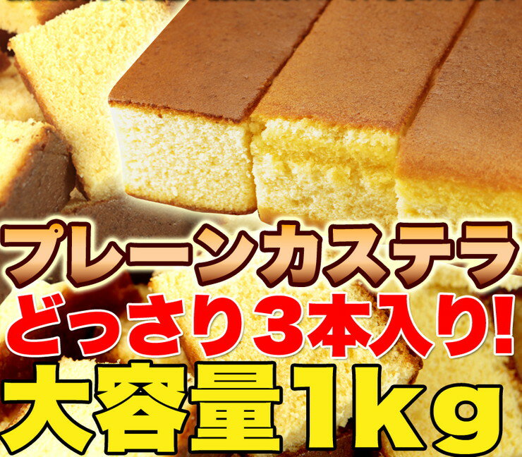 【返品・キャンセル不可 】 メチャ安 本場長崎のプレーンカステラ大容量1kg(3本セット)ギフト カタログギフト(代引不可)